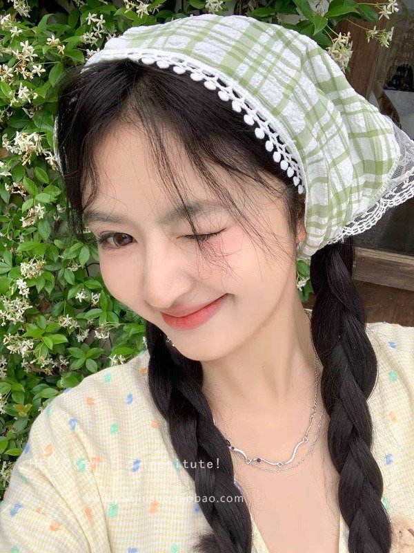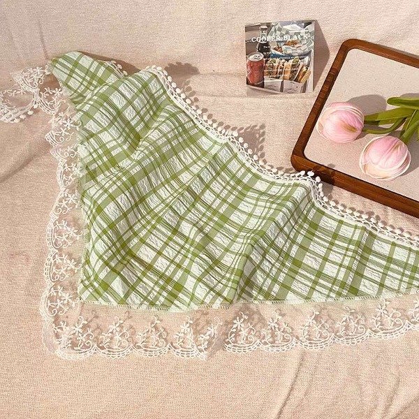 Pañuelo verde a cuadros con encaje