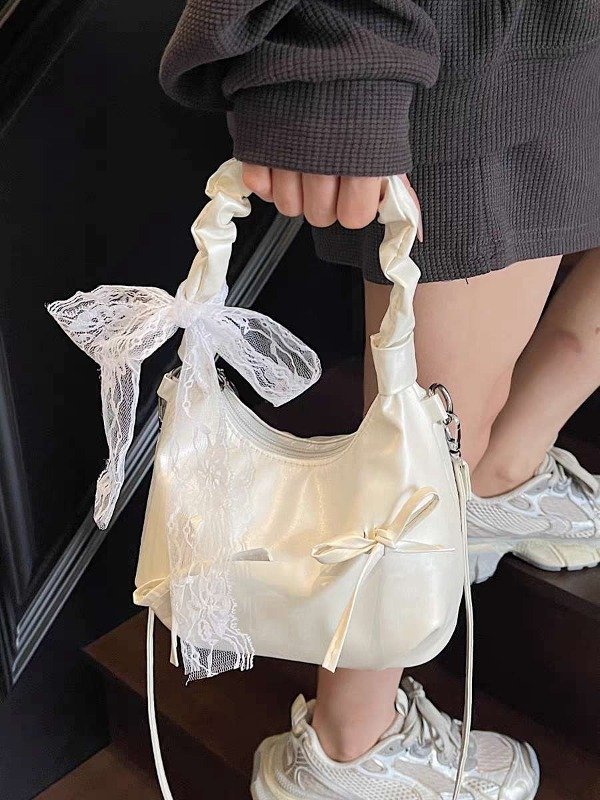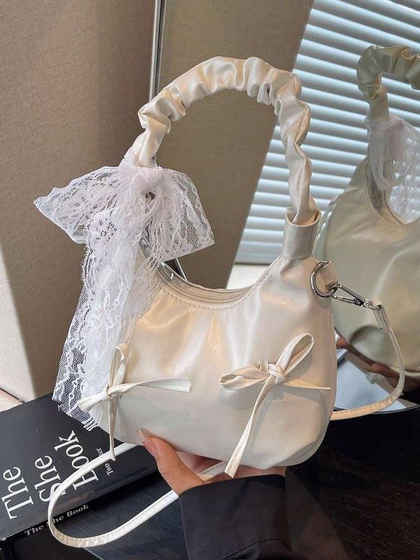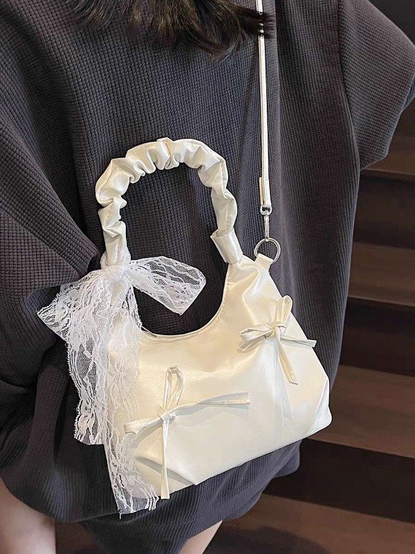 Cartera Blanca Fruncida con lazos