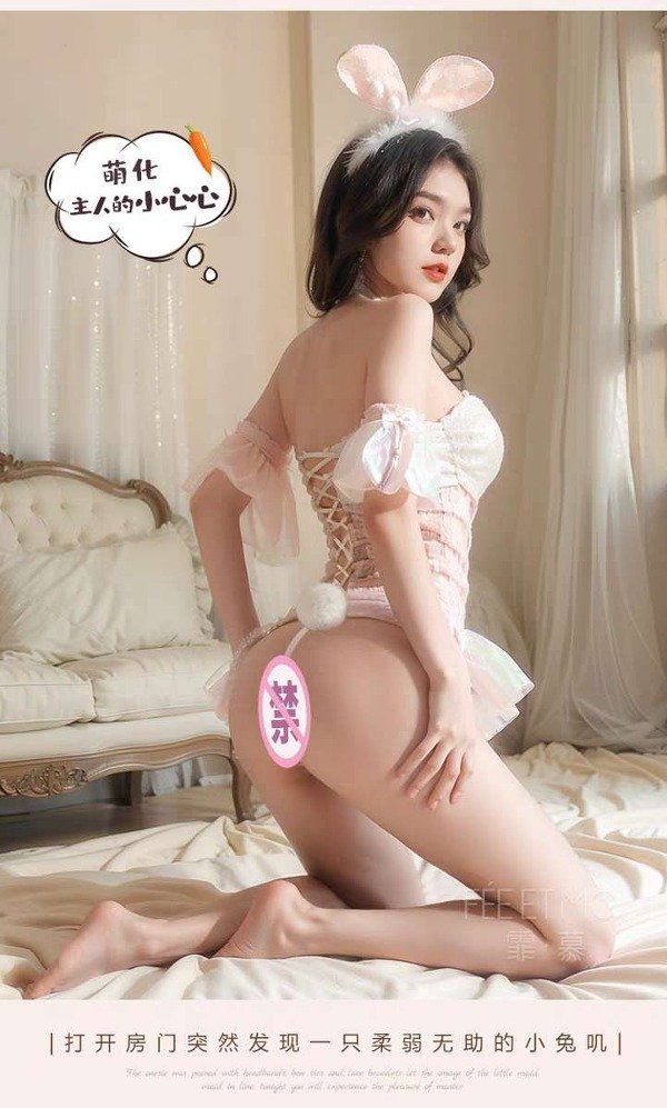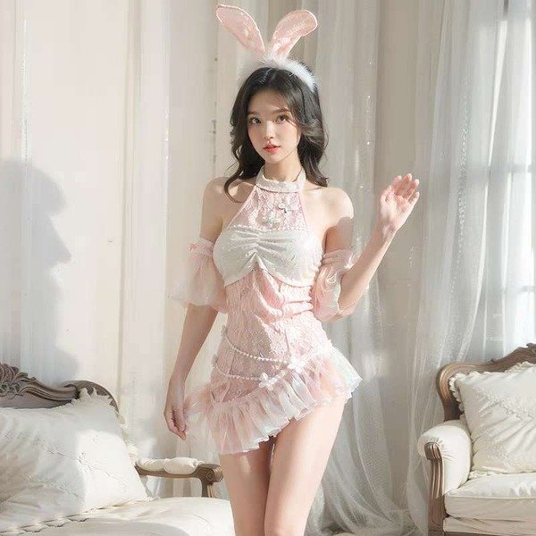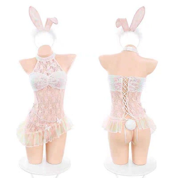 Lenceria de encaje rosa y brillante de conejo talle unico